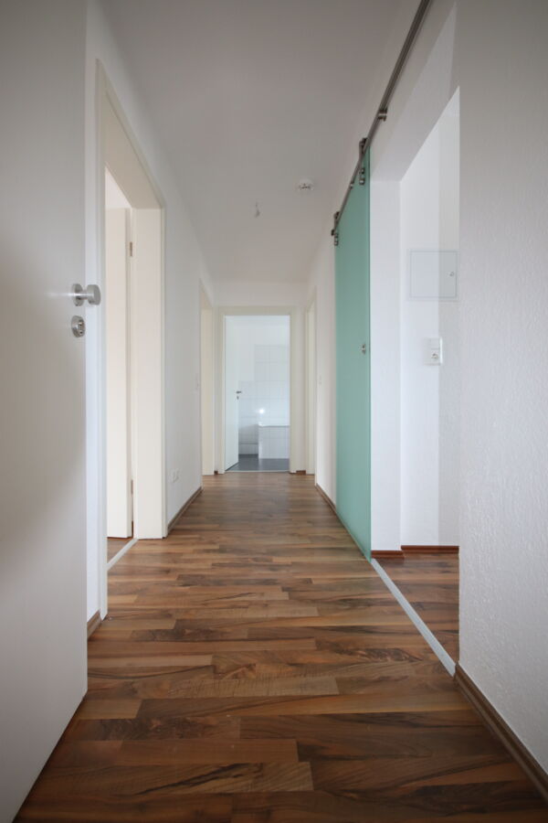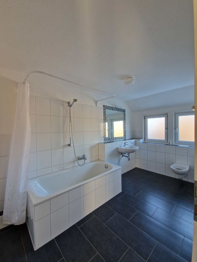 Diese 2-Zimmerwohnung überzeugt durch ihren großzügigen Schnitt. Alle Wände und Decken sind mit Raufasertapete tapeziert und weiß gestrichen. In den Wohnräumen wurde Laminat in der Farbe "Nussbraun" verlegt. Das große geflieste Tageslichtbadezimmer verfügt über eine Badewanne. Leichte Dachschrägen in der Wohnung bieten eine gemütliche Atmosphäre. Der Abstellraum mit Waschmaschinenanschluss bietet zusätzlichen Stauraum. Ein Kellerraum wird ebenfalls zur Verfügung gestellt.