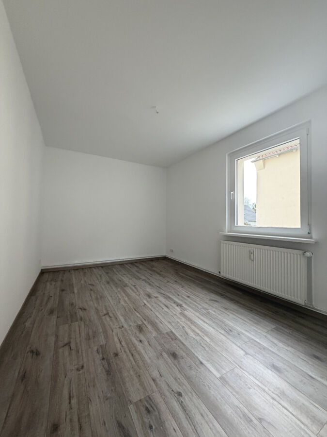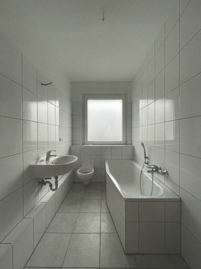 Die zu vermietende Wohnung befindet sich im Erdgeschoss des Wohnhauses. Sie verfügt über zwei Zimmer und umfasst insgesamt eine Wohnfläche von ca. 45,75 m². Alle Wände und Decken sind mit Malervlies tapeziert und weiß gestrichen und die Wohnräume wurden mit einem Laminatfußboden in einem modernen grau versehen. Das Tageslichtbad ist mit einer Badewanne und einem platzsparenden Handtuchtrockenheizkörper ausgestattet. Die Küche und das Badezimmer sind mit hellen Fliesen versehen.